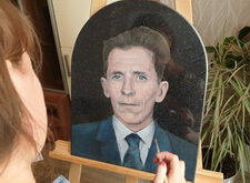 Ещё один заказ на нанесение цветного портрета на плитку из чёрного гранита. После предоставления фотографии и её дальнейшей компьютерной ретуши, мы предоставили клиенту на выбор три самый оптимальных варианта нанесения портрета на гранит.