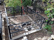 Приехав на участок вновь, мы принялись за установку ограждения, предварительно прополов место захоронения и демонтировав старые памятник с цветником.
