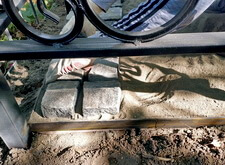 Затем мы демонтировали цветник и подрезали ему балку. В дальнейшем он изменит форму и будет занимать значительно меньше места, хотя площадь клумбы и останется прежней.