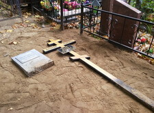 Долгое время на этой могиле стояли старые памятники и была установлена старая ограда. Как это часто бывает, новый комплекс решено было ставить после недавнего захоронения.