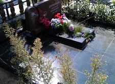 Могилу помыли. Особенно заметные потрескавшиеся швы замазали. Зону цветника почистили, лишние цветы унесли, еще хорошие помыли. Могила готова к посещению.