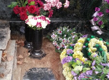 Фотографии промежуточного состояния могилы, сразу после гравировки.